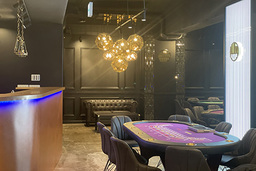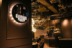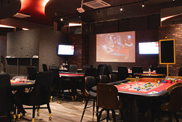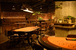 カジノテーブル7台の広々とした店内、スタンディングバー併設 -